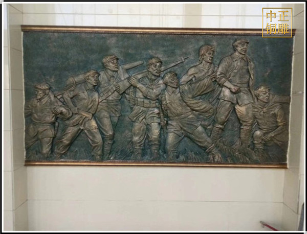 銅浮雕同時可以與建筑設計,環境藝術、室內設計、展示設計等領域相結合。在這種多樣空間形式的載體中.銅浮雕得到了更多的思維空間,就可能有更多突破和創新。反過來它也為這些藝術領域帶來更強的藝術教果和視覺審美的震撼。
