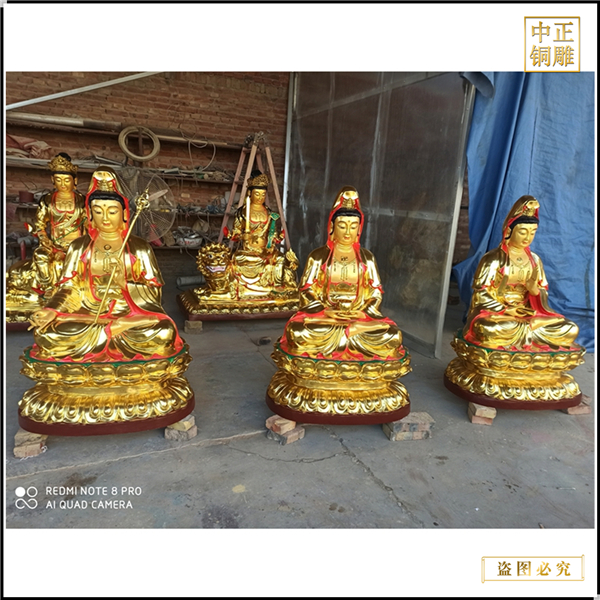 第六,表面工藝處理:一般佛像都是需要進行表面處理工藝的,一個是讓表面看上去更美觀,讓佛像看上去更真實;另一個就是掩蓋生產(chǎn)過程產(chǎn)生的沙眼和焊接等粗糙部位。表面處理工藝主要包含熱著色工藝、貼金箔、彩繪、鍍金、鎏金等幾類,還有一些局部處理工藝等等。