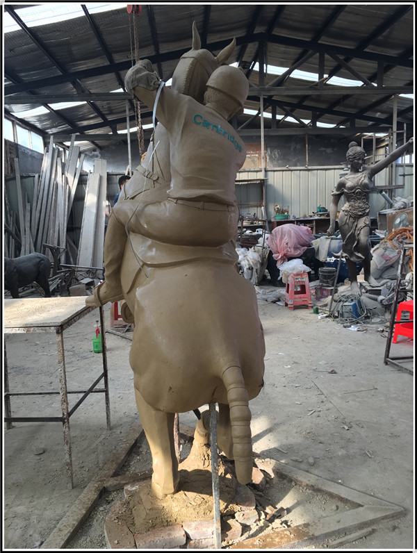 由河北中正銅雕廠家制作生產(chǎn)的鑄銅打馬球騎士銅雕塑今日發(fā)貨。此雕塑總高3米,由天津美院的老師制作生產(chǎn)泥稿。由我廠翻模制作,分塊焊接,表面做古銅色效果,發(fā)往臺(tái)灣高雄。