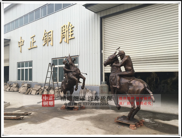 中正銅雕廠家制作生產(chǎn)的鑄銅打馬球騎士銅雕塑今日發(fā)貨
